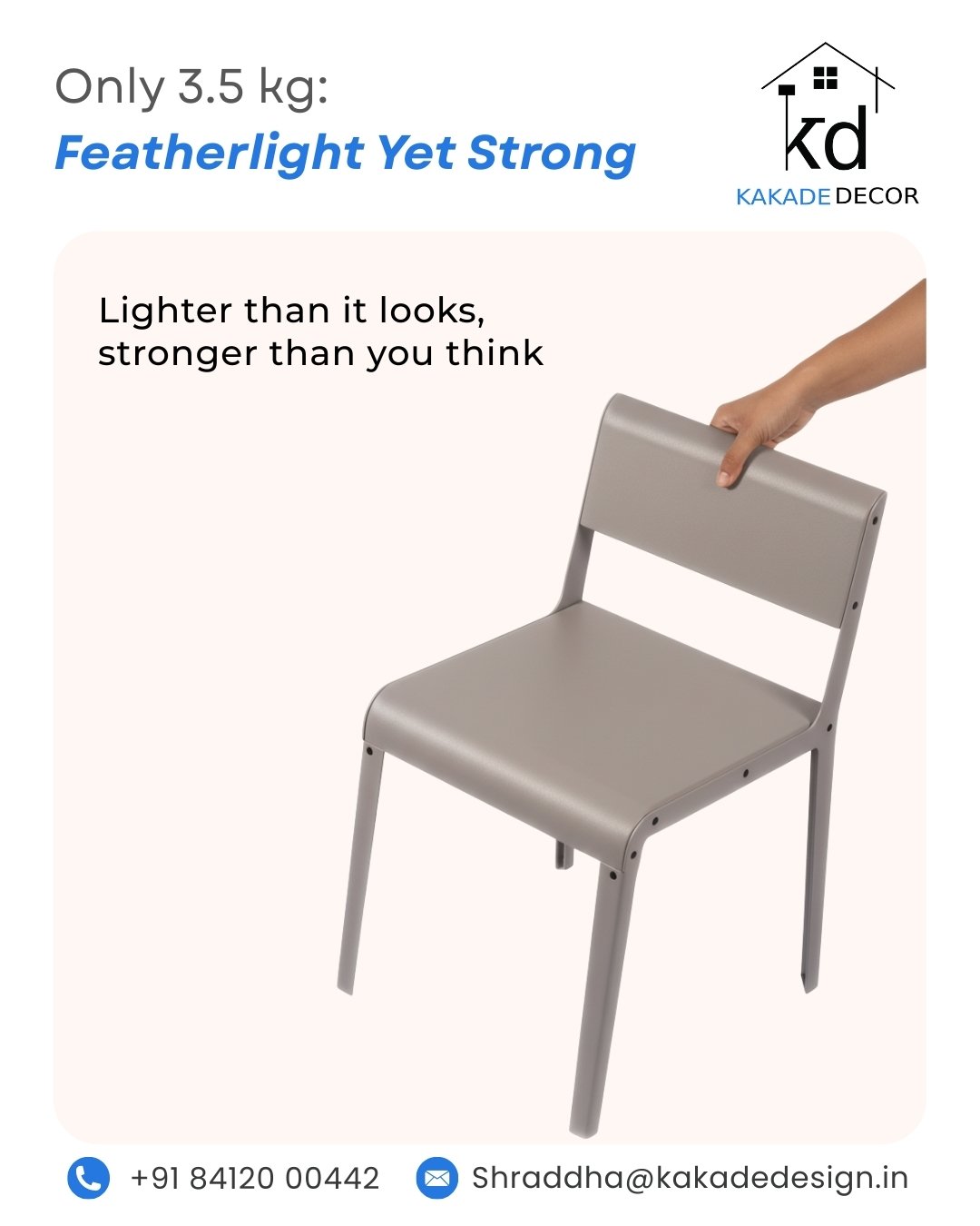 Our All-Aluminium Designer Chair is built for offices, cafés, and homes-lightweight yet strong, stylish yet practical.